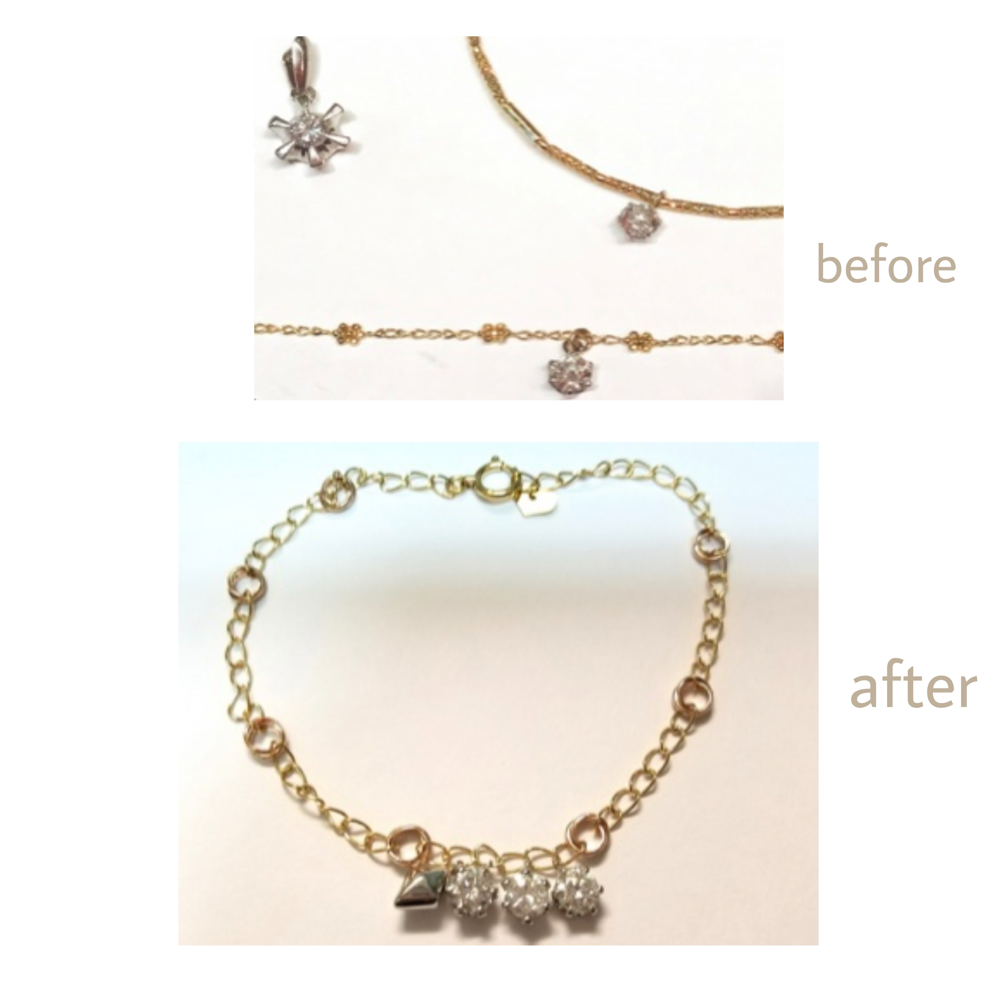使っておられないペンダントトップをチェーンリングにリフォームしました。とても可愛く出来上がりました。