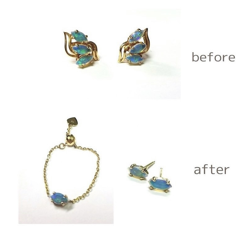 片方を失くしたお気に入りのピアスをリングにリフォームして頂きました。又新たに生まれ変わったジュエリーで気分も上々・・・楽しんで頂ける事と思います。